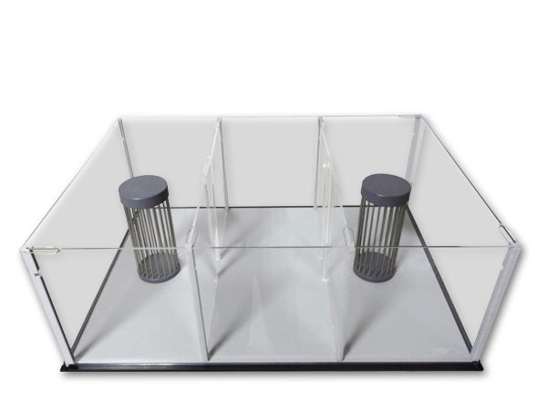 Discover our products• Removable compartment dividers allow using the box for many behavioral paradigms • Material does not retain odors • Manual sliding doors • Optimized for video-tracking systems with non-reflecting material • Classical social interaction test widely used in literature • Quickly realized (5-10 minutes) • Simple to set up and use | • Assessing neophobia anxiety and depression-like behaviors • Learning and Memory • Social interaction • Drug Screening • Phenotyping • Autism • Schizophrenia • Neophobia |