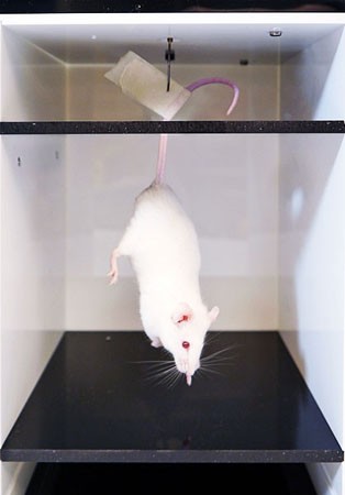 The tail-suspension test was developed as an alternative to the Porsolt Forced Swimming test, and is based on a similar concept. Mice, suspended by their tail using a piece of tape (a painless method), innately attempt to escape from this adversive situation. However, following failed attempts to escape, they experience a kind of despair and become immobile. The magnitude of immobility is considered to be correlated with the depressive-like state of the subjects and is significantly decreased by antidepressants. The Tail Suspension Test was described in the 80's by Steru & al. and allows for fast evaluation of drugs' (anti-depressants, sedatives) psychotropic effects, making it a classic and painless research test for anxiety and depression.