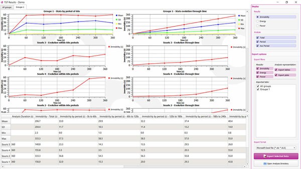 The TST-SOFT generates graphics that can be exported as a bmp image for further presentations.