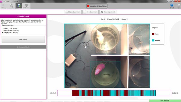 Experiment manager, analysis module, replay possibilities and the TYC algorithm are some of the features that make FST DUAL SENSOR a very innovative and easy to use instrument for both mice or rats studies (up to 4 animals can be tested at a time), based on the famous Porsolt Test, or "behavioral despair" test