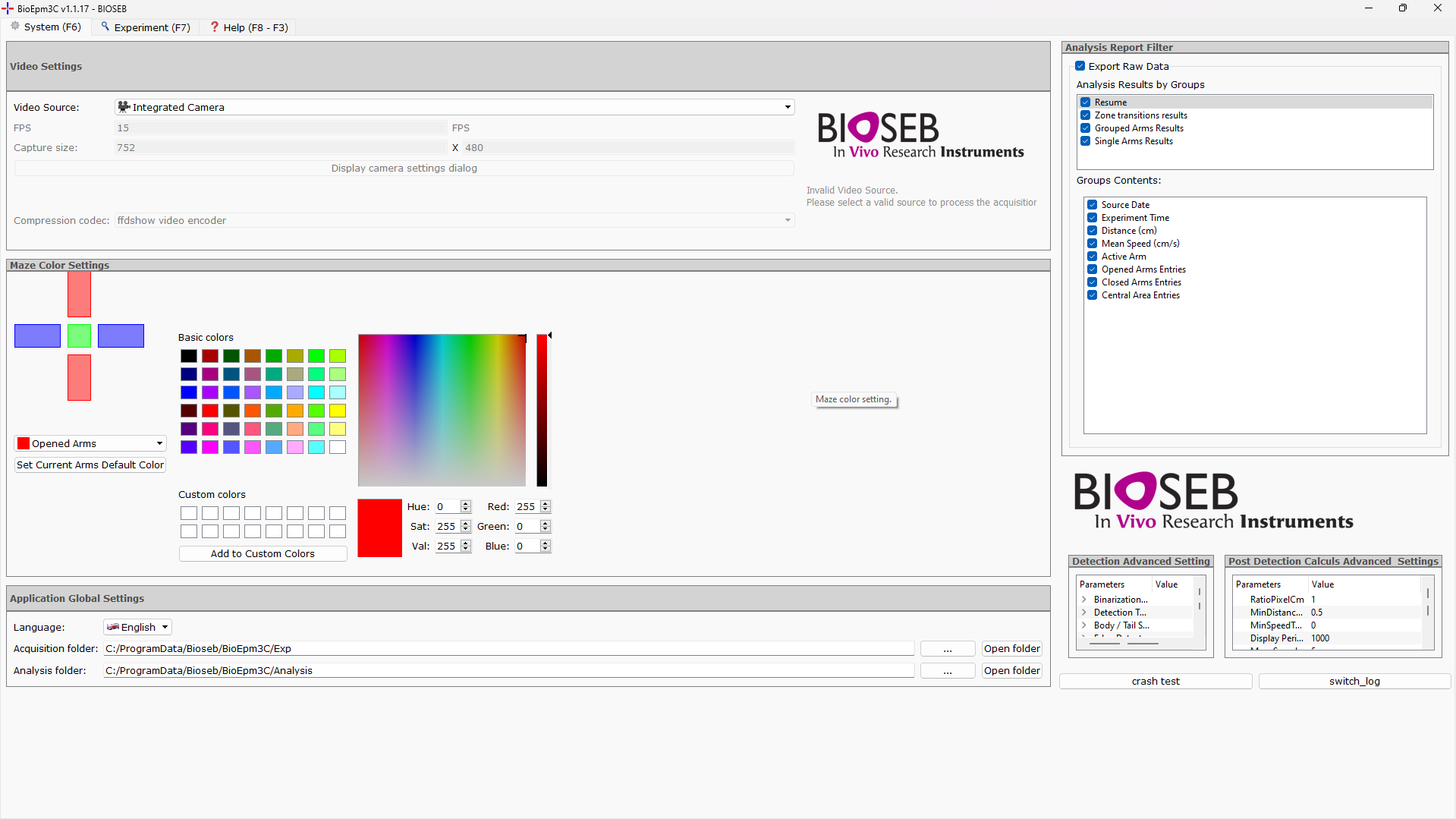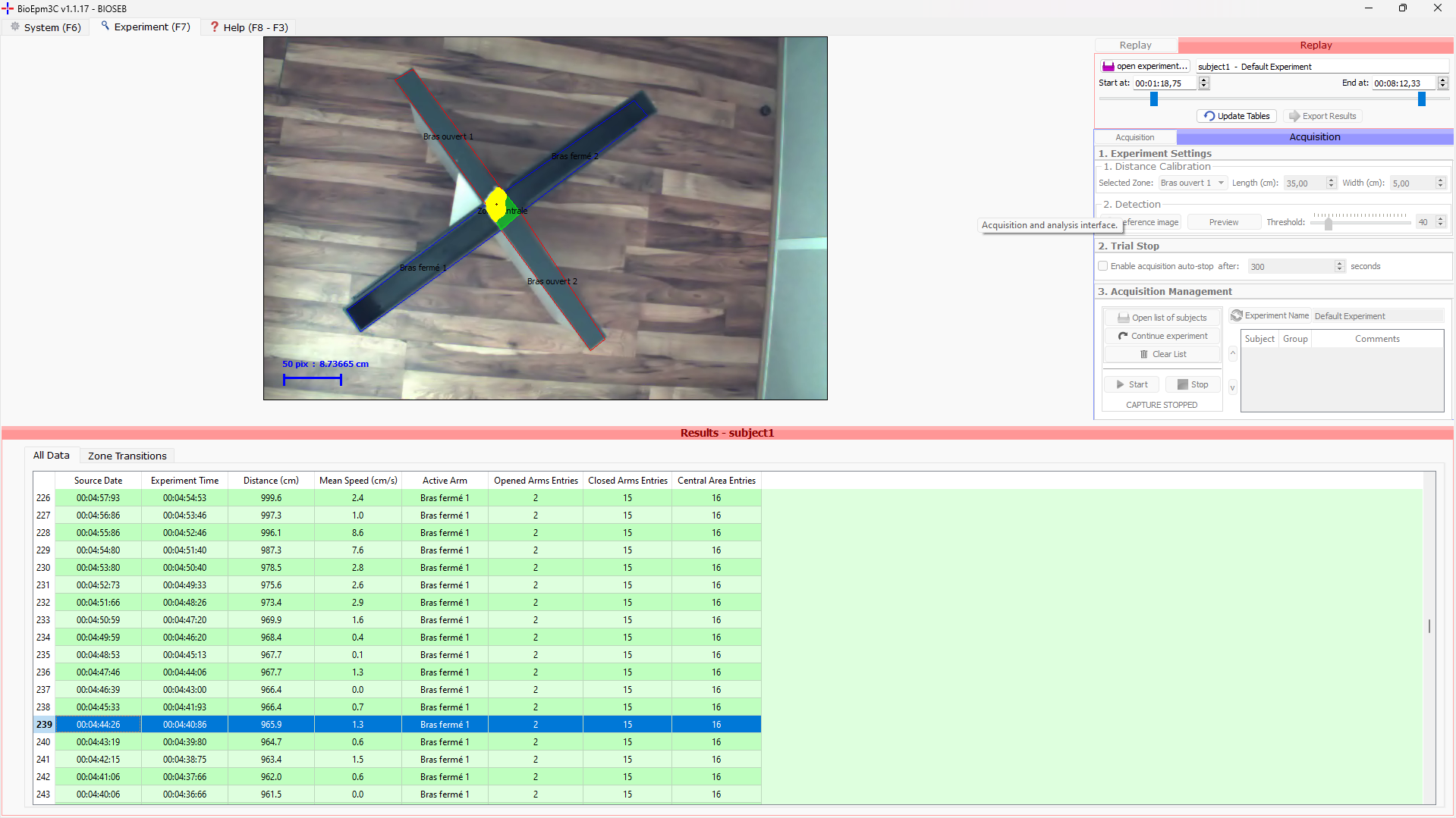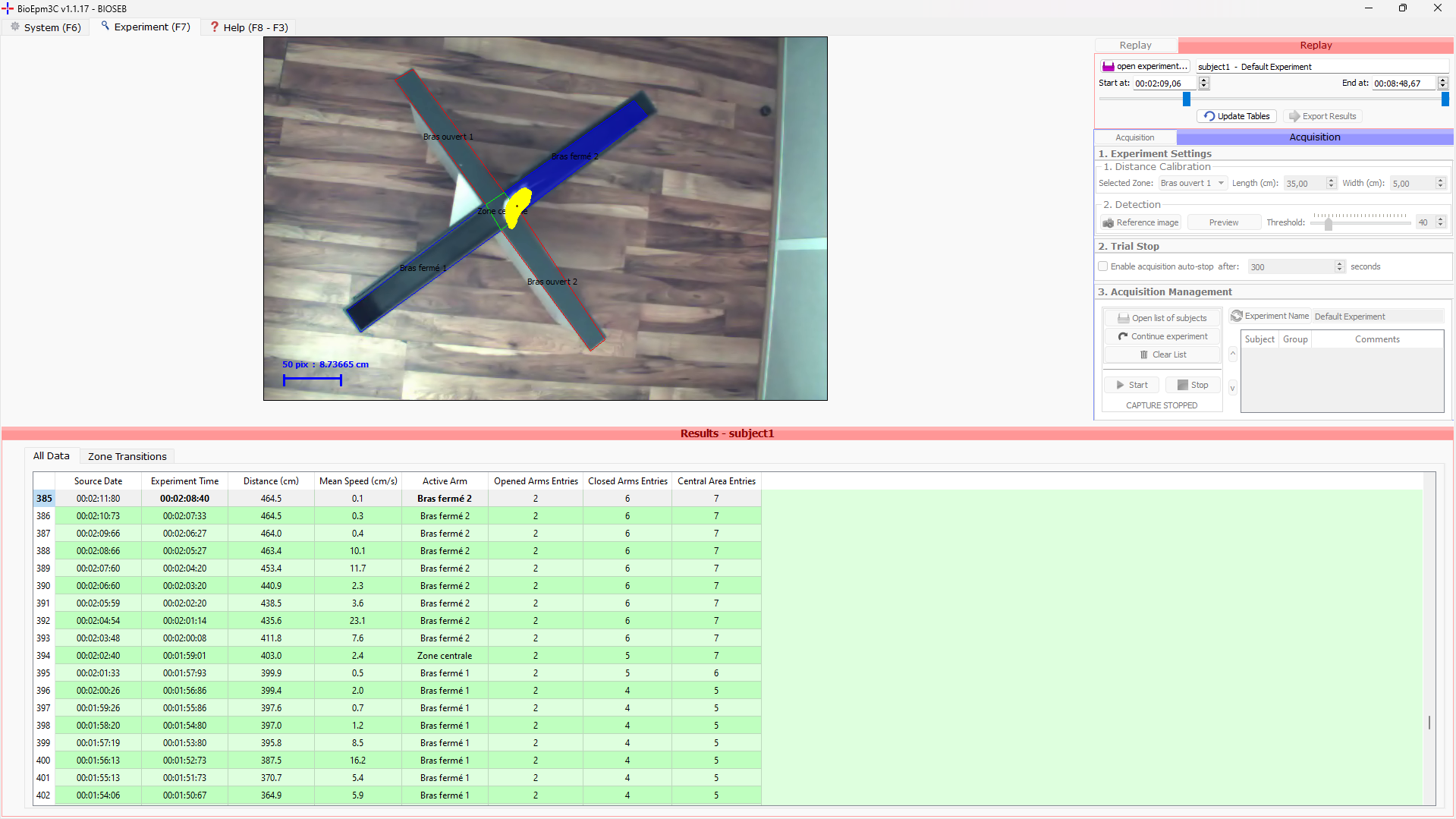 The new EPM-3C solution from BIOSEB features unprecedented simplicity to run ELEVATED + MAZE or ZERO MAZE protocols. The user interface includes pre-defined zones with easy-to-adjust reporting of in/out times, speed of motion, time spent in each arms (open/closed), automatically ! The entrance and exit conditions match 98% of the human scoring. Raw data reports, zone transition reports, and animal listings can be edited in excel, saved, and loaded. Macro are provided to simply analyse batch of .xls files and generate a report that fits most of the statistical software.