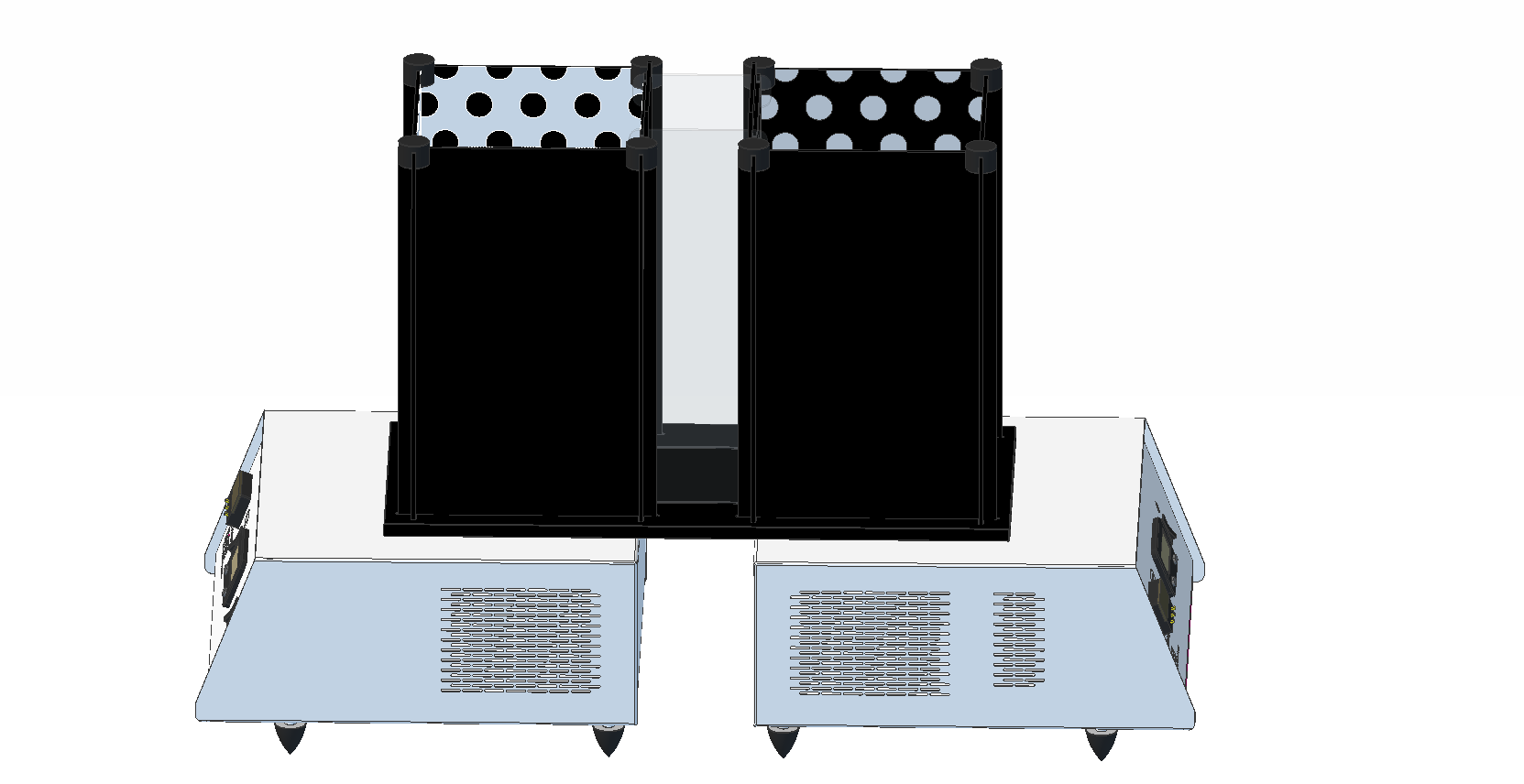 | • “CPP” Kit (Conditioned Place Preference): Three distinct compartments, including a transparent central corridor for evaluation of time spent in each section and for contextual preferences. Each compartment can be fitted with different contextual panels to create neutral or distinctive environments. Outer compartments are closed by removable manual doors. | ![]() |
