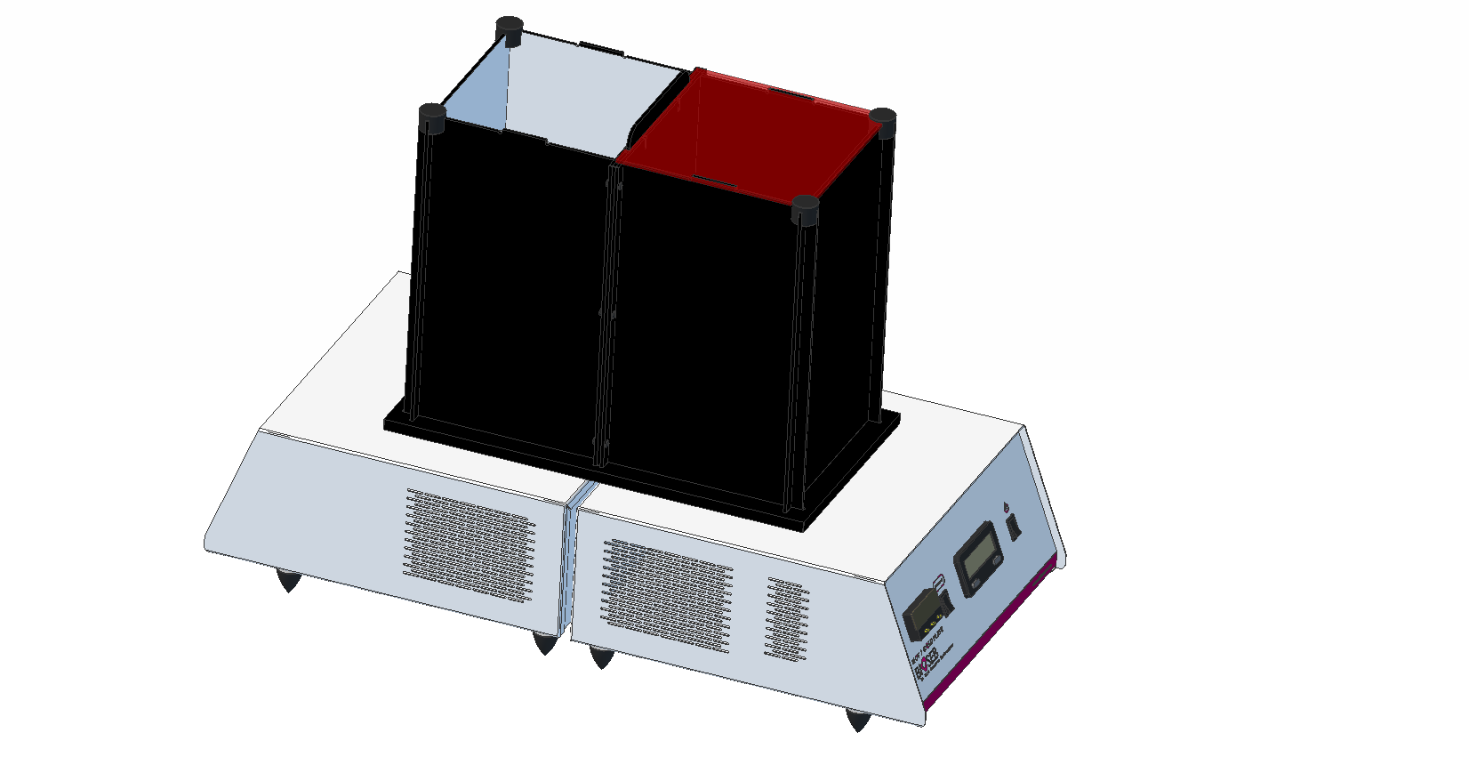 | • “Dual Aversion” Kit (Equivalent to Light & Dark test): Two distinct compartments: one white, open and brightly lit; the other one black, covered with an opaque red lid. Ideal for anxiety-related experiments or escape latency measurements. Additional light reinforcement can be used to adjust aversive intensity. | ![]() |