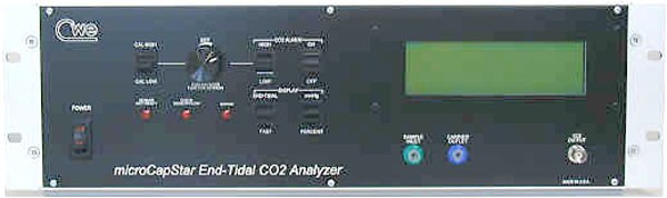 Discover our products| The front-panel display (see illustration) shows CO2 concentration (either instantaneous or ETCO2) in either percent or mmHg, and a 5-minute trend plot of ETCO2. Calibration is performed with a single calibration gas and room air. An adjustable ETCO2 alarm provides a warning when end-tidal values fall out of a user-adjustable preset range. All adjustments are performed digitally using a single knob. Built-in diagnostics monitoring warn of plugged sample tubing or other fault conditions. | ![]() |